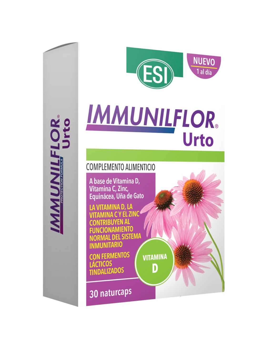 Immunilflor Urto 30 ESI 30 cápsulas en un complemento alimenticio a base de Vitamina D, Vitamina C, Zinc, Equinácea, Uña de Gato. Con fermentos lácticos tindalizados
