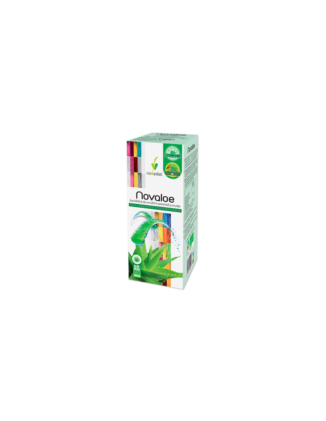 Novaloe de Novadiet 1 litro, que contiene jugo de aloe vera de alta calidad, para mejorar la salud digestiva.