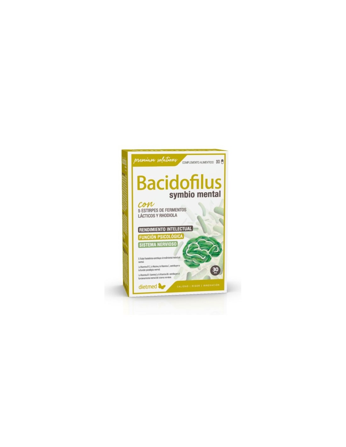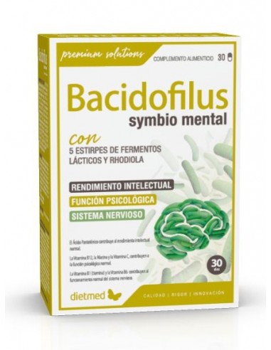 Bacidofilus Symbio Mental de Dietmed. Con 5 estirpes de fermentos lácticos y Rhodiola.