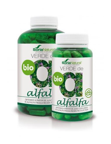 Verde de Alfalfa Soria Natural. Aporta un alto contenido de vitamina K, lípidos insaturados, oligoelementos, clorofila, enzimas y aminoácidos azufrados, que en la dieta actual se encuentran en cantidades muy reducidas.