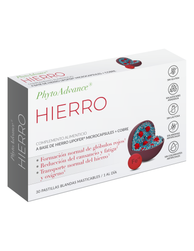 Hierro 30 pastillas blandas de PhytoAdvance. Complemento alimenticio a base de hierro Lipofer Microcapsules + cobre.